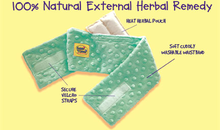 The Happi TummiŽ was invented out of necessity by Nanette Meneses and has been proven to provide nearly instant relief for infants with colic and stomach aches. The Happi TummiŽ consists of a waistband and herbal pouch containing lavender, chamomile, lemon grass, peppermint, spearmint, wheat and flax seed. When heated for 15 to 20 seconds, the herbs are activated to release healing properties which provide almost immediate relief of most common stomach ailments.